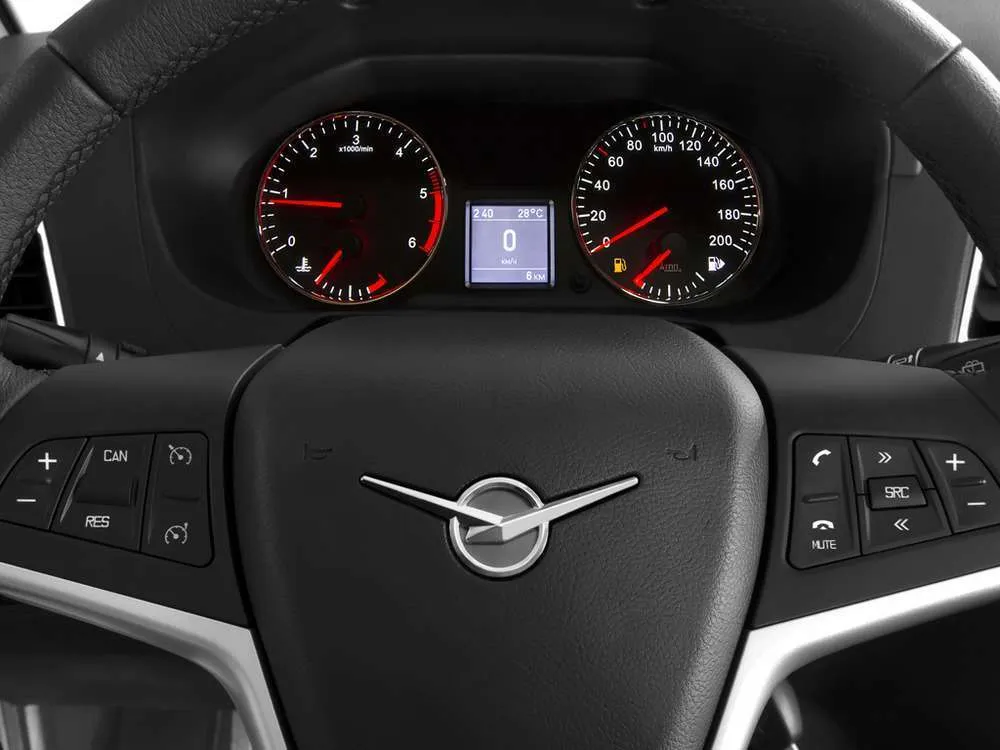 • Комбинация приборов с функцией бортового компьютера 4-х стрелочная с подсветкой белого цвета, хромированные ободки